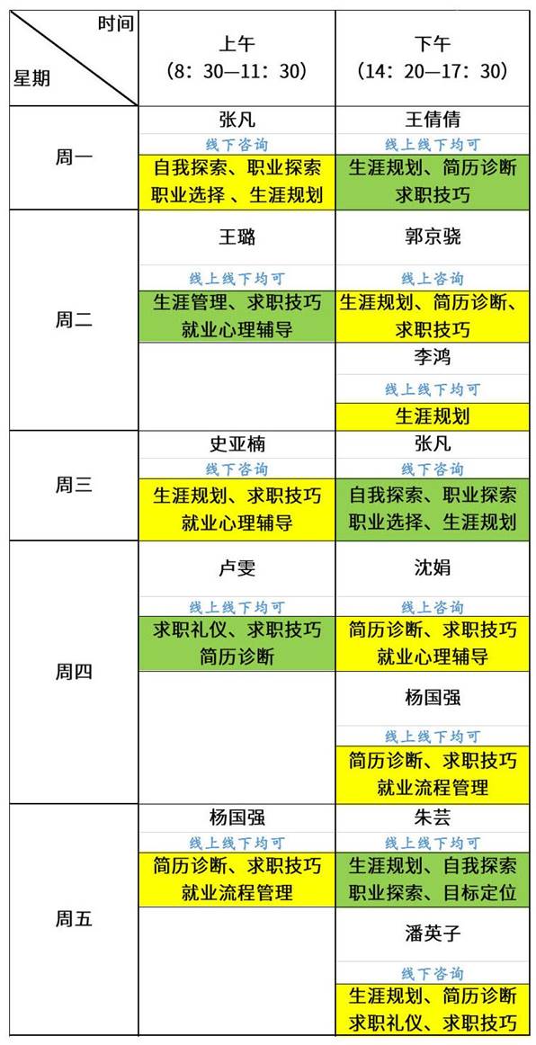 一、咨询师咨询时间表