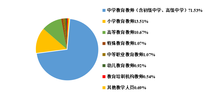 教学人员27.59% 工程技术人员11.20% 其他专业技术人员8.70% 金融业务人员5.69% 办事人员和有关人员4.35% |