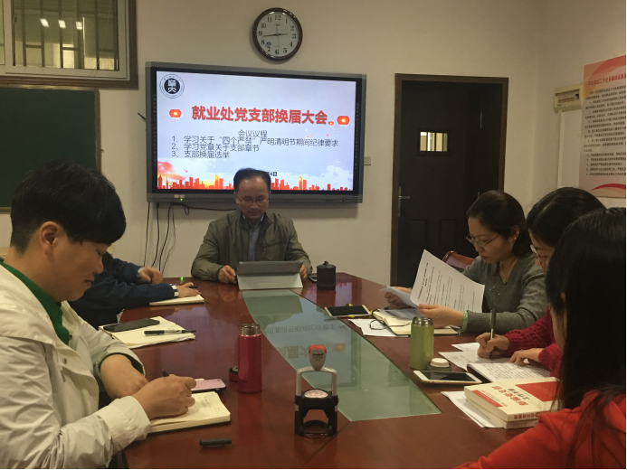 《关于贯彻〈中国共产党党和国家基层组织工作条例〉的实施办法》和换届工作程序进行。会上,上一届党支部书记王茂胜代表支委会作工作报告,回顾总结了近三年来就业处党支部在围绕中心、服务创新、发挥战斗堡垒作用等方面取得的成绩。