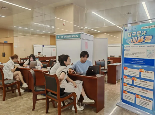 2025届毕业生了解公考信息和强化考试内容,由党委学生工作部就业处主办、中国农村研究院承办的“‘桂子星光’2025届毕业生公考训练营”于9月19日至9月20日在新大学生活动中心就业服务大厅开展了选岗咨询与赠书活动。
