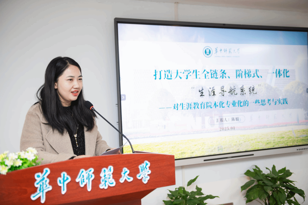 第二项,经济与工商管理学院党委副书记陈娟分享了在生涯教育院本化专业化方面的实践经验,她提出接下来将在打造院本化生涯教育课程、个性化生涯咨询辅导、专业化生涯师资队伍三方面持续推动工作。