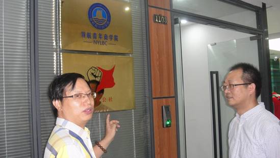 21日上午,刘永生一行拜访了深圳领航青年商学院,领航青年商学院院长危正龙、副院长韩小杰接待了刘永生一行。领航青年商学院是深圳大学生创业教育、青年创业孵化专业机构,在深圳创业孵化机构中具有较大影响。危正龙、韩小杰介绍了领航青年商学院的主要工作,表示愿意与嗨皮漫画