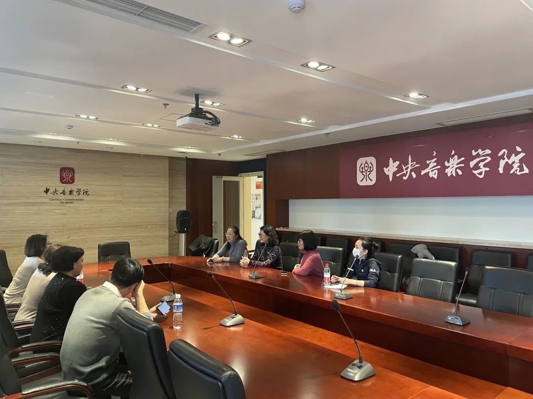 3月6日上午,詹艺虹一行赴中国音乐学院调研,与音乐学系教授康瑞军、研究生院副院长康啸、研工部副部长王静波、学科办主任李欢进行座谈交流,双方就艺术学科发展、教学评估、课题申报、音乐人才培养、研究生工作等进行交流。