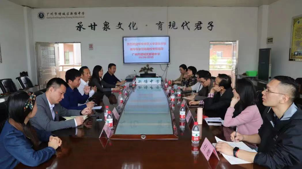 张展辉,教研处主任马景广,办公室副主任朱文渊,团委代理书记、音乐学院2006届校友朱昊,音乐科科组长饶夕阳参加座谈会。韩焰明介绍了新塘中学的校史、办学特色、发展现状以及音乐科组在高考和教学活动中取得的成就。朱昊从师德、业务能力、教育教研、辅导学生、德育管理等方面介绍了自己工作中取得的主要成绩,他表示,自己将继续秉承“忠诚博雅 朴实刚毅”的华师精神,坚守在教育一线,不忘初心,砥砺奋斗。双方就毕业生就业情况、音乐教师专业发展、基础教育教学与本土甘泉文化深度融合等话题进行了深入交流。